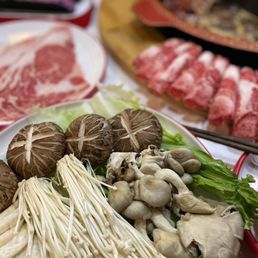 This hot pot place is amazing. Meat quality was above my expectations. I've been a few times with my children, and the servers were very kind and helpful. We ordered beef and lamb combo, some meatballs, veggie combo, pork broth and chicken broth. My son doesn't like spicy (crazy, I know), but you have to choose the same spice level for all your broths, even if you get different broths. It would have been nice to get my broth a little spicier. We've been before and got the combos but it was so much food we couldn't finish. With the combos we had shrimp paste and fish balls. The shrimp paste was SO GOOD. More often than not, there was a party or wedding at the neighboring restaurant. This made it kind of fun to have hot pot and people watch. Their silent weapon here is their desserts. OH.MY.GOODNESS. The sweet buns with condense milk, the coconut blast things (I don't know the real name) just blasts hot gooey goodness into your Mouth. We tried their pumpkin something (again, I'm terrible at the names) pastry, and that changed my life. Also, the watermelon juice is a MUST. The hot pot is delicious, but the dessert... you will never forget.
